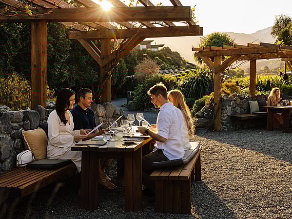 Following your spa experience, enjoy a relaxed lunch in the village overlooking the thermal grounds. Seasonal gourmet fare and artisan platters provide the perfect midday pause before descending into North Canterbury’s celebrated wine country.