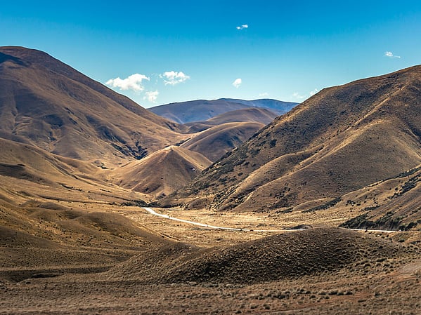 Depart Queenstown tracing the curves of the Kawarau Gorge before ascending the golden sweep of the Lindis Pass.