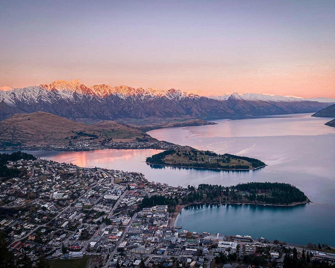 Continue over the Crown Range — New Zealand’s highest alpine road — for a cinematic entrance into Queenstown.