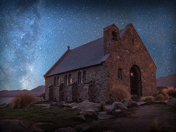 Continue to the turquoise waters of Lake Tekapo, where the Church of the Good Shepherd marks the edge of the glacial shoreline.